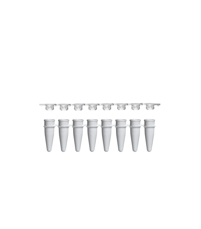 Mikrocentrifugační PCR zkumavka 0,2 ml, 8-strips, se spojeným plochým průhledným víčkem, bílá